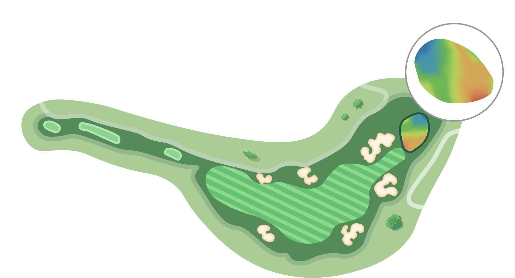 공략지점에 따른 세컨샷은 다양한 클럽선택이 주어지는 샷밸류가 무척 뛰어난 홀이다.