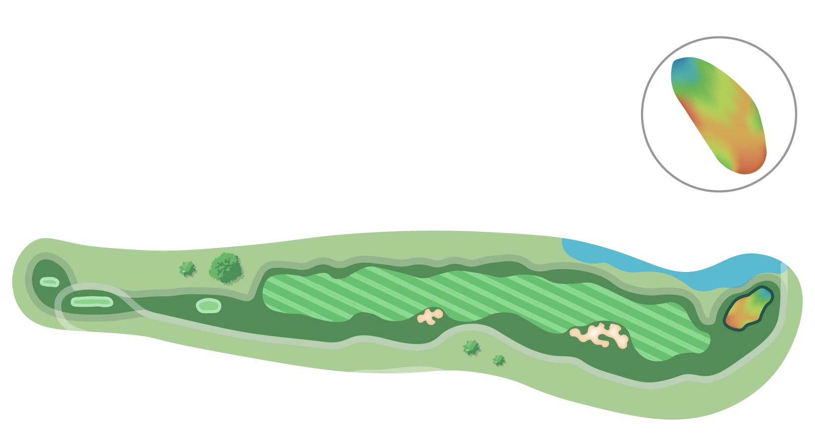 IP 방향으로 공략지점을 설정하면 그린 공략이 무난하나 그린과 맞닿아 있는 워터 해저드가 부담으로 작용할 것이다.
