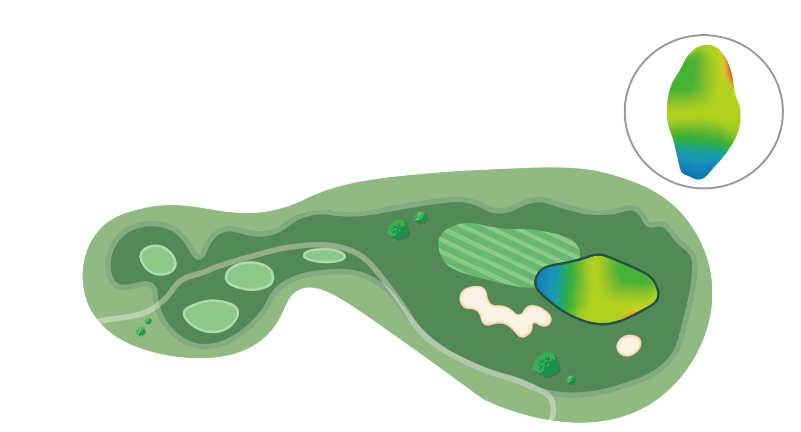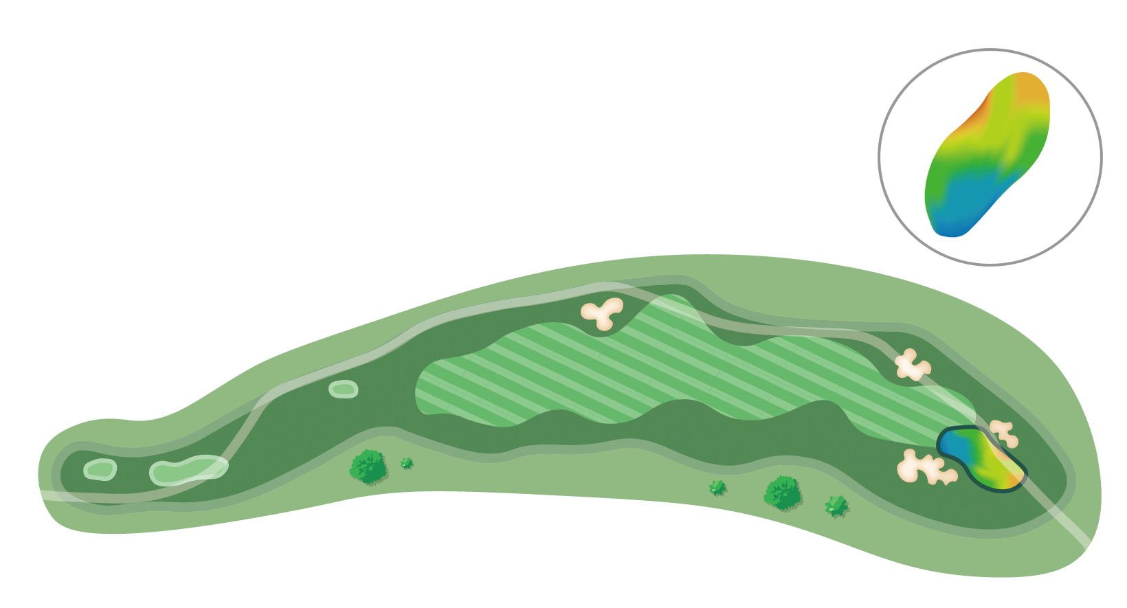 방어적인 측면보다 우측공략을 유도하고 그린 공략에도 유리하다.